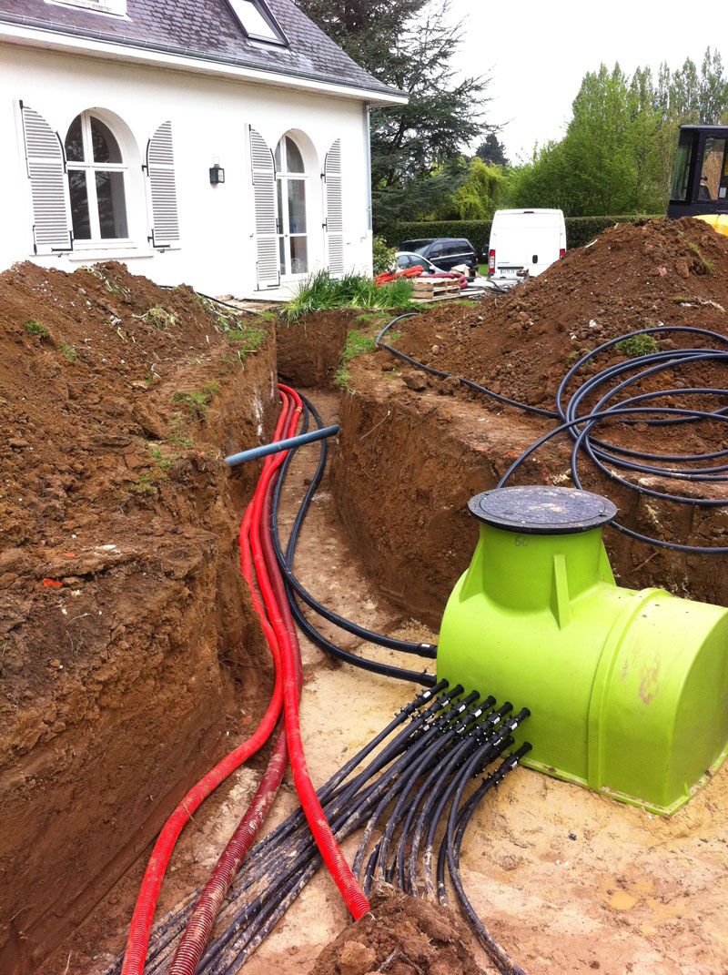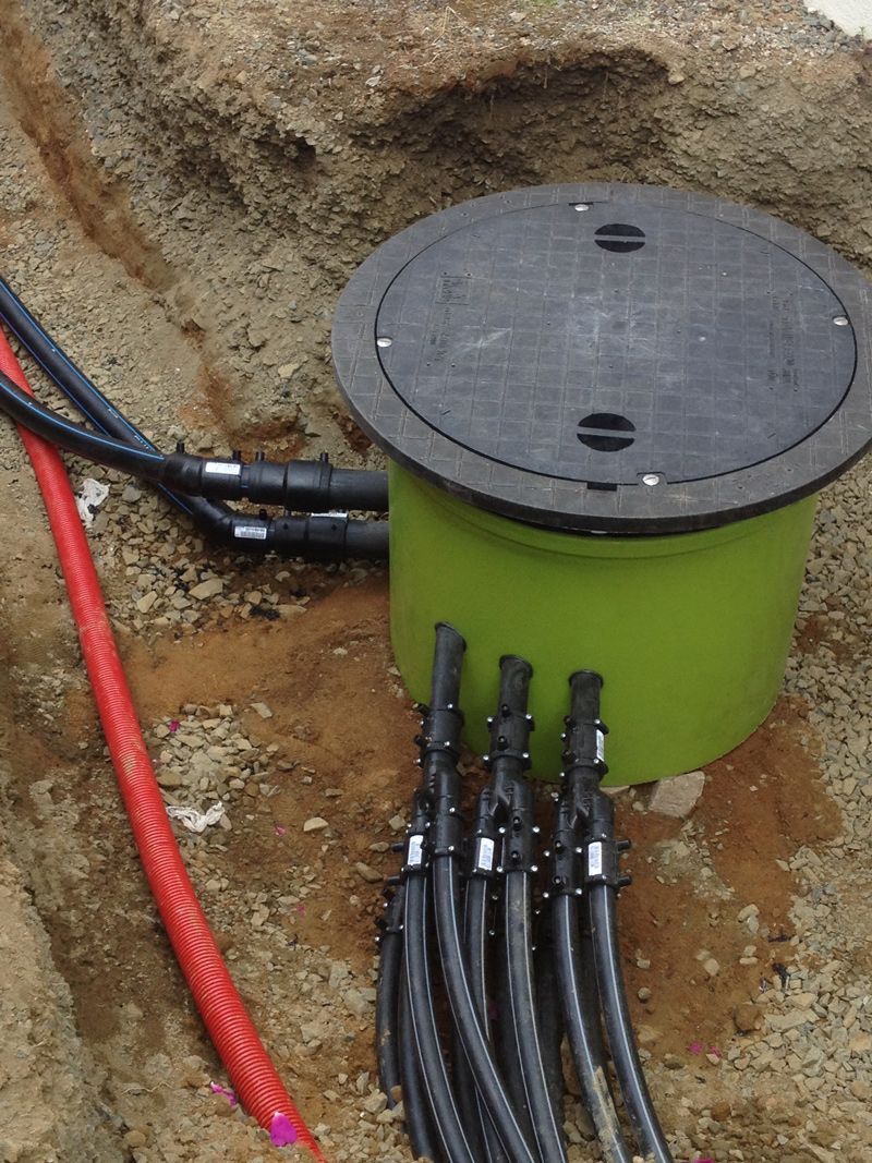Enfin, nous réalisons une cimentation intégrale, c'est à dire une injection de coulis géothermique pour éviter les infiltrations de pollutions, le mélange des nappes et d'obtenir une meilleur conductivité du sol.